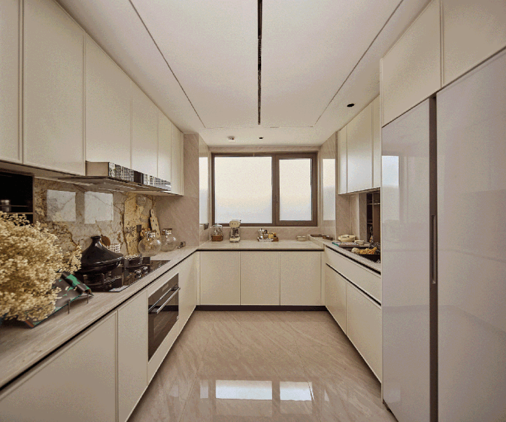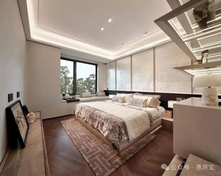 室内空间:引入了全屋智能家居系统,能通过App、中控、语音三大方式,调节全屋智能家居,包括客厅灯光、空调、地暖、新风、客厅和主卧窗帘等场景。