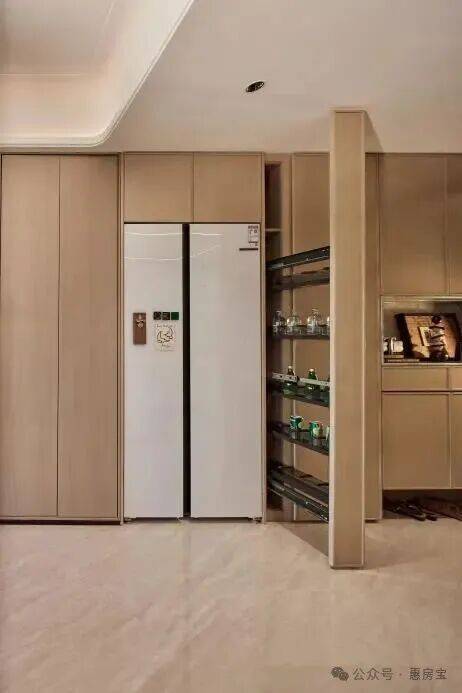 部分柜体更安全的圆角处理、高柜顶部一窥到底的镜面反光膜、大大提高空间利用的薄抽,不用弯腰一踢即开的踢脚抽设计,便利性大大增加。项目大量使用奢石设计,客厅四边弧形天花、主卧树叶拼花地板、精致优雅的骨骼线设计,都是开发商花费更大成本和耗材去呈现更美的视觉体验。以100m²户型为例,总收纳量高达17.66m³,而一般户型只能做到14-15m³。其次是细分,21大收纳区格。从5大收纳区的镂空玄关柜,到分类更细致的卫浴空间,再到厨房的5大分区,以及更惊喜的餐边柜,划分6大功能区,全屋收纳量飙升。室外空间:入户识别门禁+电动门无接触归家,儿童乐园高峰时段陪玩管家+高清摄像头,非机动车热成像摄像头+烟感+喷淋灭火装置,三大维度保证便捷安全的公共空间。