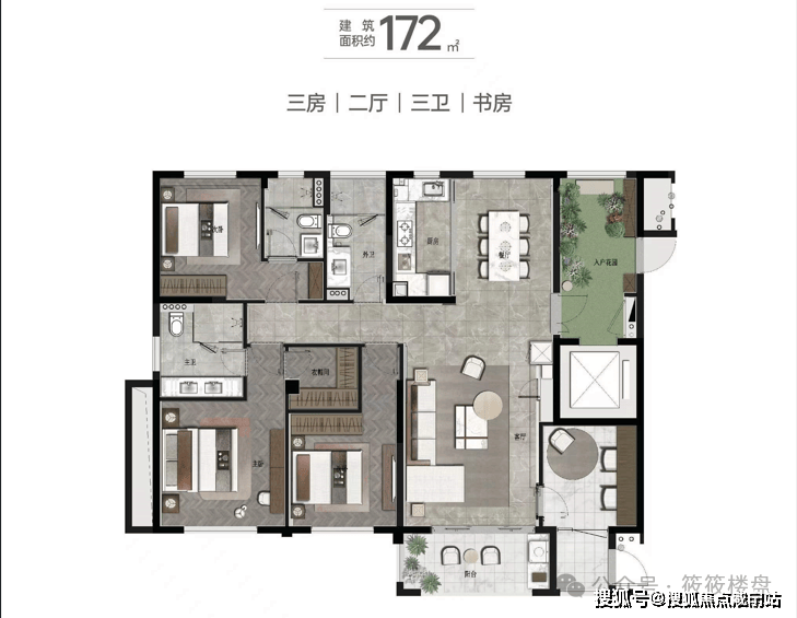 建面约172㎡4房2厅3卫▼