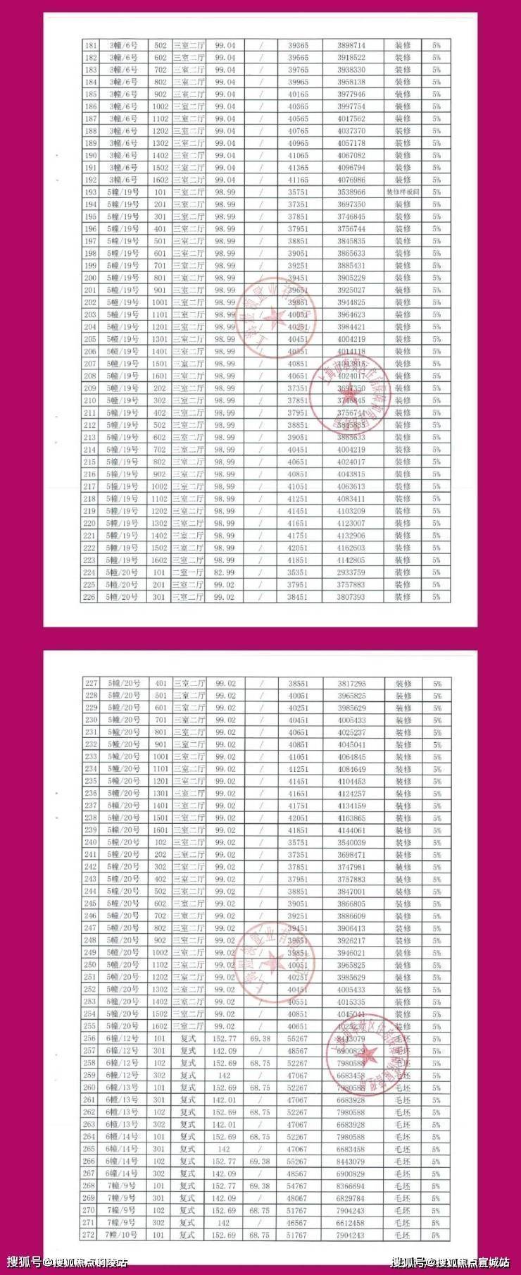 一房一价表发布: