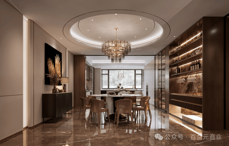 通燃气设计支持家宴接待,某企业主将386㎡户型兼作家庭居所与商务会所,使用效率提升30%;
