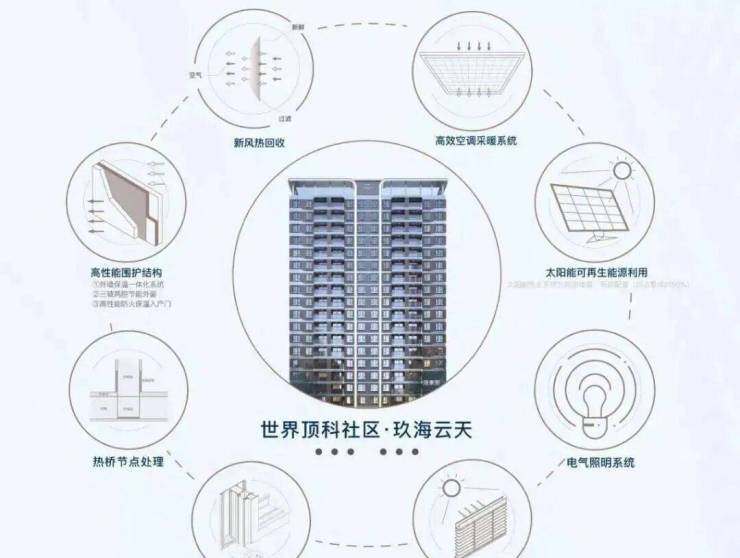 8大超低能耗技术(通过外墙、屋面、门窗优异的保温隔热性能,结合具有高效热回收功能的新风系统的运作,使四季的室温维持在人体适宜的温度)之外,增加户式新风系统、高效VRV空调、局部太阳能热水系统、超低能耗围护结构、雨水回用系统、自动微喷灌系统、海绵城市等技术,使项目达到国际绿色建筑更高标准:绿建三星级(住建部考核审定认证),领衔时代健康、理想人居。