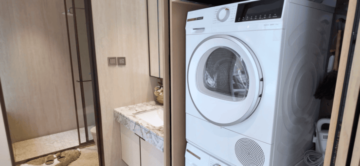 比较有特色的是,预留了独立家政间区域,甚至还交付了博世洗烘套件。