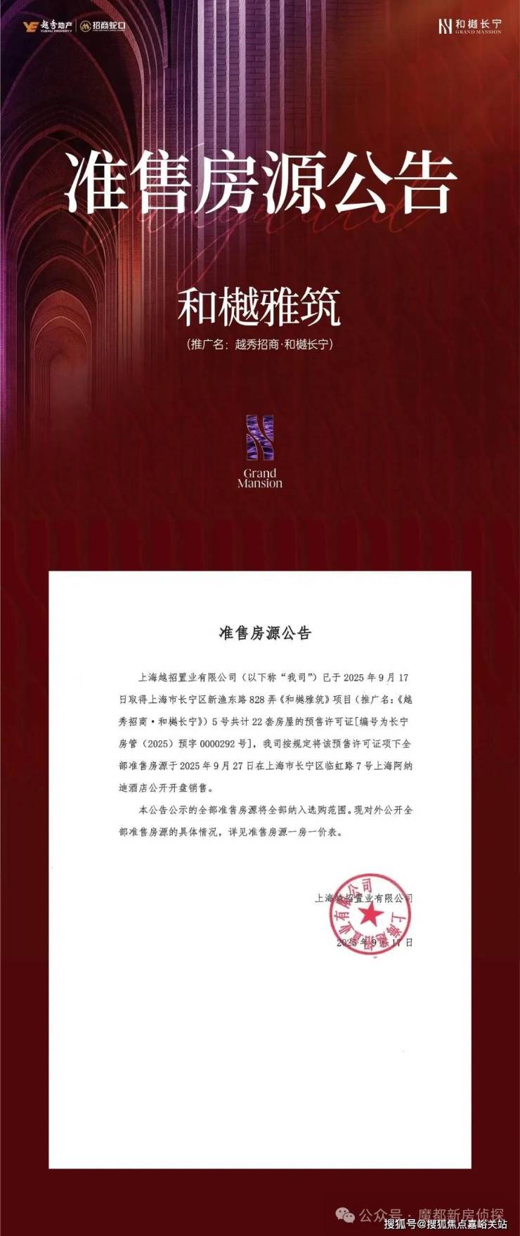 最新消息,长宁全新盘,首开售馨「和樾长宁」二批次央景楼王,建面约120-145㎡3-4房,均价13.8万!火爆认购中!
