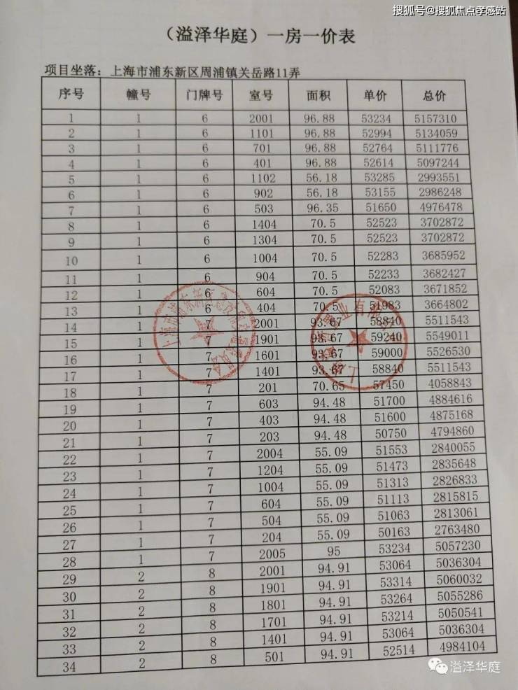 最后,附上完整一房一价表: