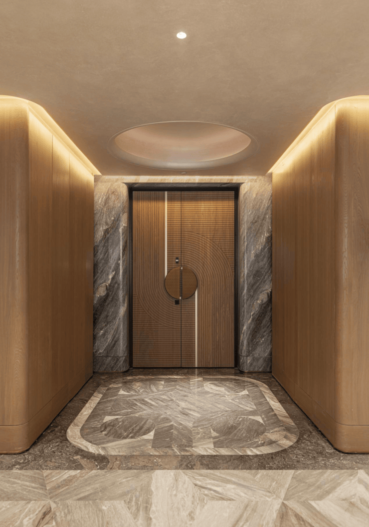 两梯一户配置,尊享独立电梯厅、入户玄关与独立储藏间