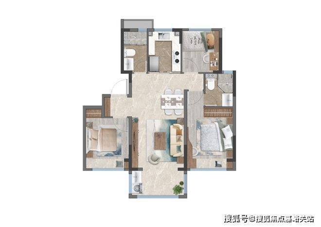 所以,这个户型从面积段上来看是建面约95㎡的紧凑型3房,但整体室内的各个空间都并不拥挤。