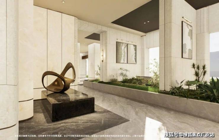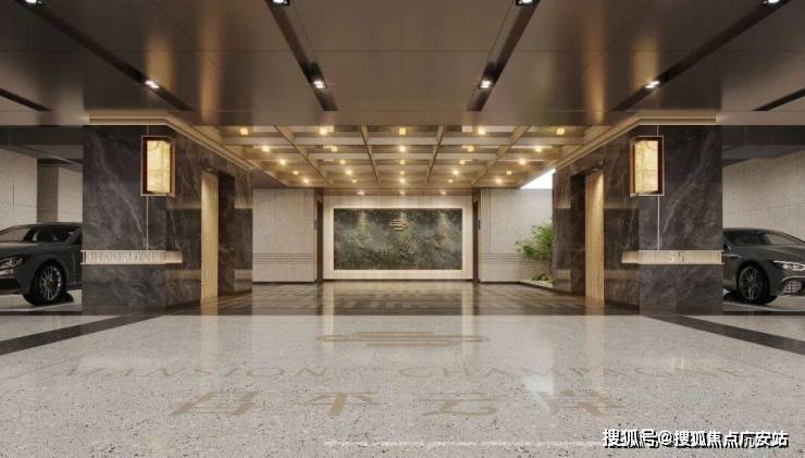 项目一楼设计 星级入户大堂,挑高穹顶之下,天然石材与金属线条交织出当代艺术馆般的恢弘气度。这里不仅是归家的第一重仪仗,更是名流圈层的 社交艺术厅,精致的皮革沙发休憩区,也能成为您会客洽谈的隐贵主场。