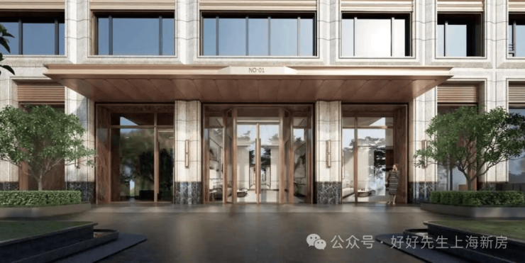 古铜调金属与通透玻璃在归家门庭交织,辅以中式挑檐与四进式入场动线,既回应了真如寺的文脉,也把海派建筑的比例与仪式感放到了每天回家的那几步。
