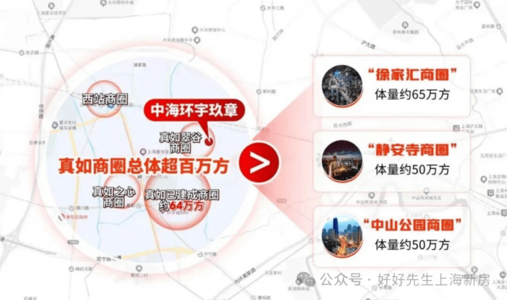 这一体量不仅超过当前的徐家汇、静安寺、中山公园等传统商圈,更意味真如将成为上海内环旁首屈一指的“百万方商办集群”,未来无论产业集聚力、商业辐射范围,还是对高素质人群的吸引力,都将实现量级突破,成为名副其实的“内环旁新增长极”。