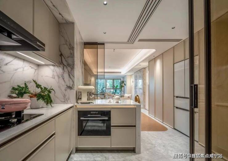 开放式厨房配备博世5件套、弗兰卡龙头及水槽、AO史密斯净水器等,均为国际一线品牌精装。通过岛台串联厨房和餐桌,提升功能性的同时更具幸福感~