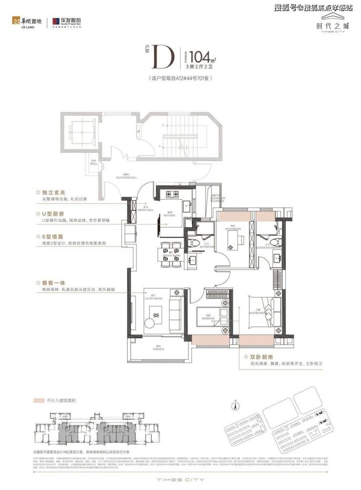 「时代之城·雲墅」营销中心热线💹💹:400-8855-420☎☎建面约104㎡3房2厅2卫,八批次总价约507-585万,经典动静分离户型,三开间朝南,独立玄关,U型厨房,预留分户S墙设计,可释放厨房冰箱空间!