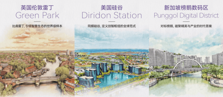 深度对标世界三大标杆区域——借鉴英国雷丁的“公园式创新极核”理念,融合美国硅谷Diridon站域的“创智枢纽”模式,呼应新加坡榜鹅数码区“产学研协同”的人才生态