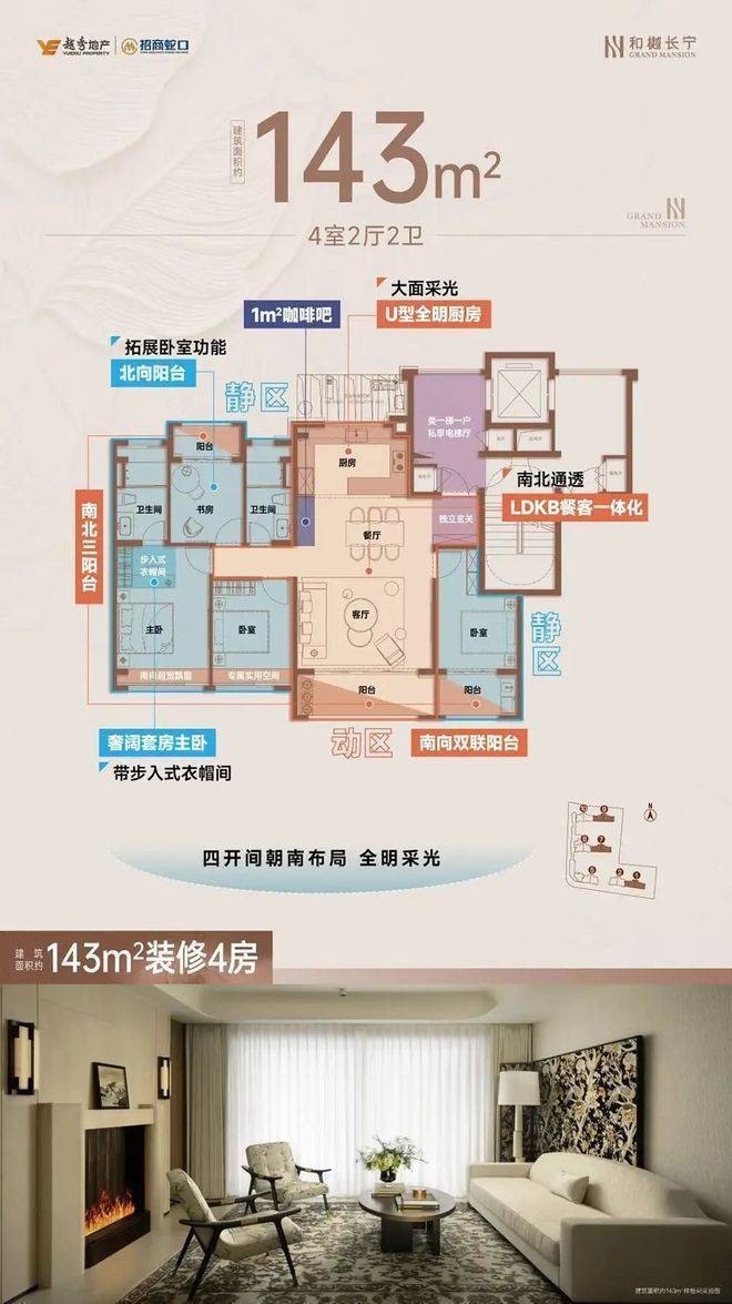 建面约143平四房更夸张,阳台附赠更大、门口的私家电梯厅预测能有9-9.5个平方的附赠;如果都加在一起,实际可利用面积超过132平,实得率超92%: