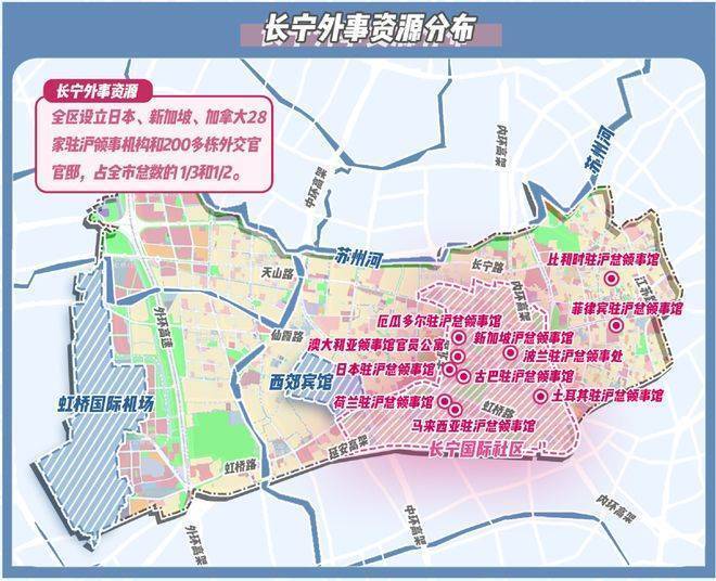 这一点首先体现在外事资源上,28家驻沪领事机构、200多栋外交官官邸在此落户,占全市总量的三分之一和二分之一。