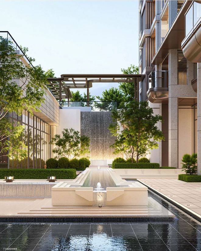 立体园林以多层次水系与艺术雕塑,营造“城心绿洲”的静谧氛围;