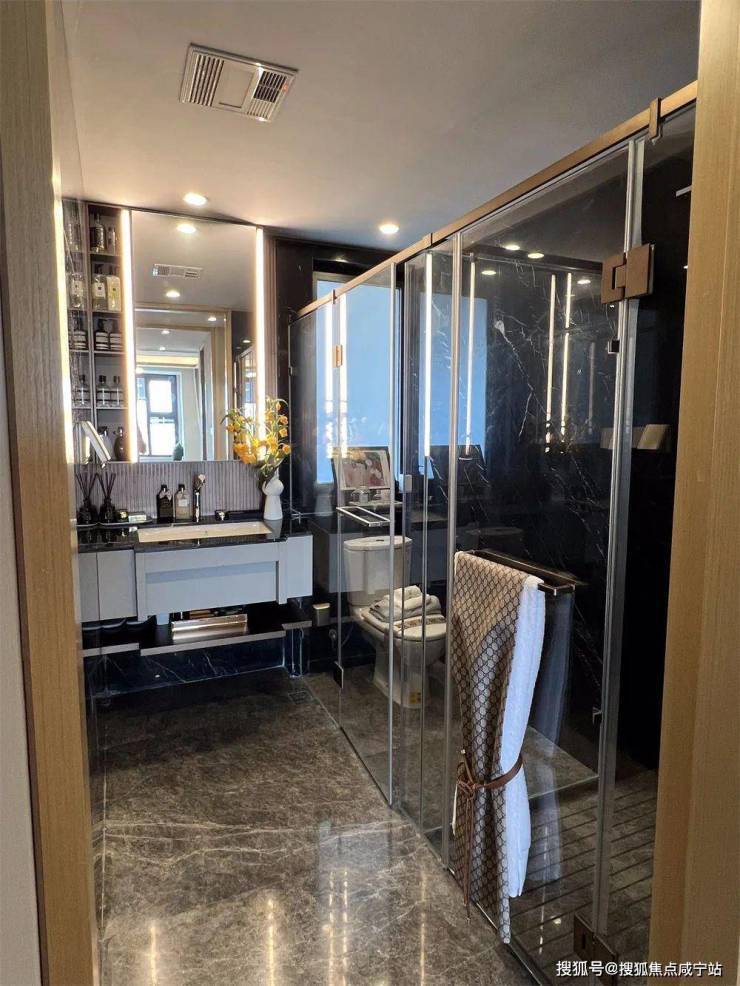 精装方面,水尚华庭的装修标准非常高,厨房采用高级定制款橱柜、老板灶具三件套、威能热水器等,卫生间使用的是奥普暖风机、马可波罗抛釉砖,还设置了镜柜、台盆柜等收纳,体现了人性化和高品质细节。