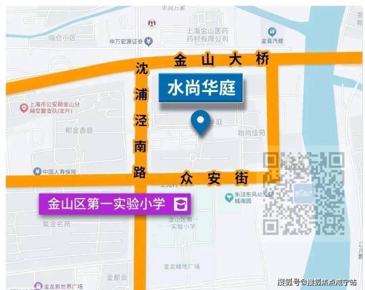 水尚华庭,位于朱泾镇沈浦泾南路与众安街交汇处,东侧掘石港,北侧则是亭枫公路。