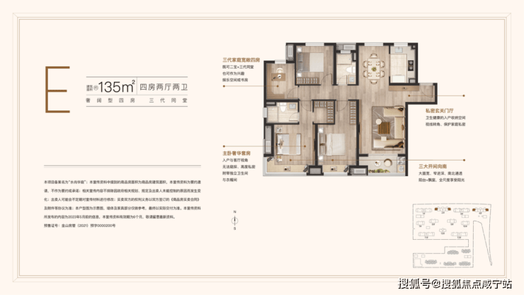 建面约121、128、135和144㎡的四房,拥有极致的通透视野。特别是建面约135㎡四房,全部为边套户型,三开间朝南,主卧自带L型飘窗,拥有270°景观视野,非常适合大家庭生活。