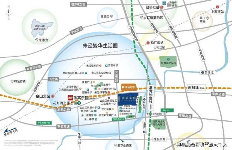 其中,沿着亭枫公路一路直达乐高乐园,未来坐拥南枫线、嘉青松金线(规划中)“十字中轴”,又自带丰富配套的朱泾板块,或将成为下一个国际度假区。