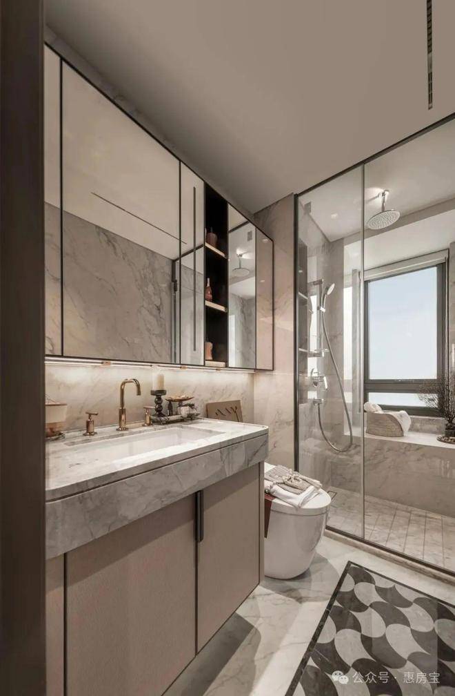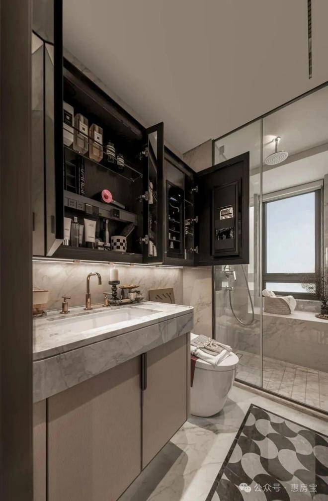 又如卫生间干湿分离,镜柜自带置物架与美妆冰箱,护肤品有序冷藏,晨起焕新更显精致。可以说,这套户型用隐形收纳艺术,成为百平内功能型三房的优选!