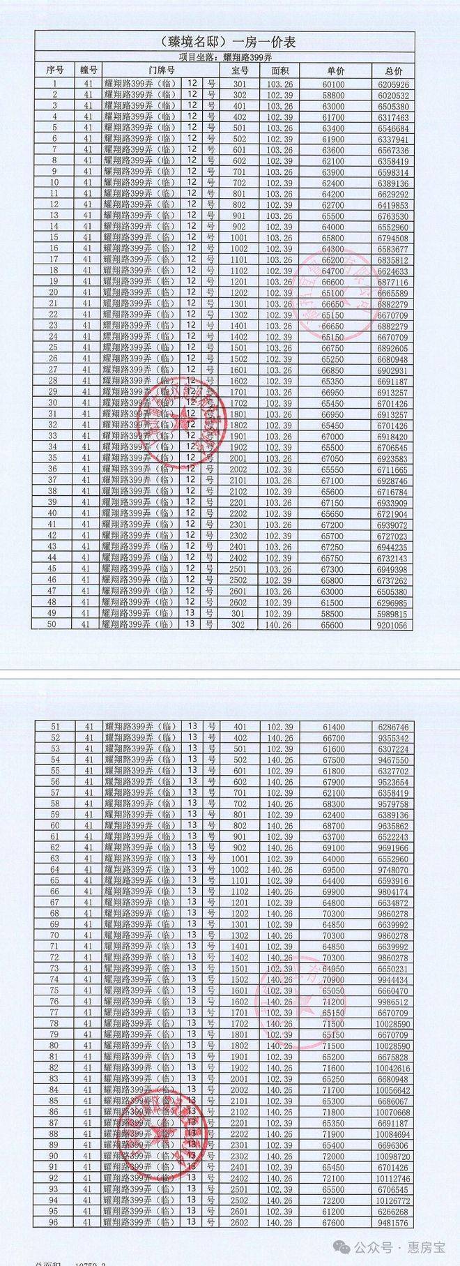 一房一价如下:
