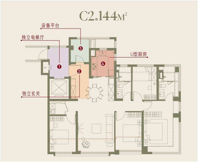 144边套户型:7.4平全明独立电梯厅,实得率超98%,超200m楼间距,视野无遮挡。