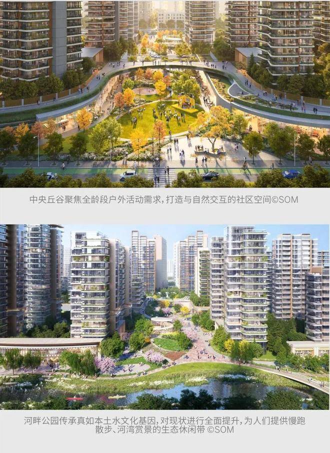 “真如翠谷”规划以“悦”、“赏”、“游”、“聚”四大主题为脉络,相应打造了仓廪市集,中央丘谷,河畔公园和桥水门户四大场所,并通过贯串全域的社区漫步景观带,将这些高品质公共空间有机串联起来,打造成为城绿共生、全龄友好、活力精致的大型高品质社区。