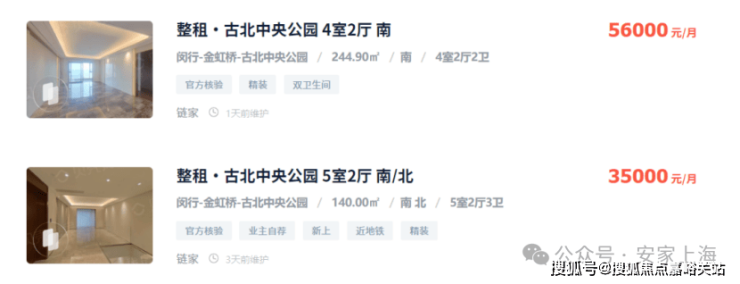 从网上挂牌价格看,古北的大户型房源月租金基本都在35000-55000之间,项目一路之隔的【古北中央公园】,挂牌价格在13-14w左右,161平米的三房,月租金3.8万,可以说投资回报率相当高,而且租客多为驻沪领馆外事人员、外企高管、国际学校陪读家长等,圈层较高且稳定。