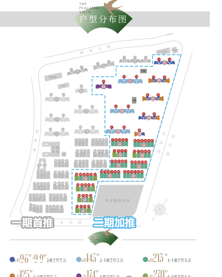 一期首推389套臻席房源,约96平小高层、约125-145平洋房、约213-270平联排。