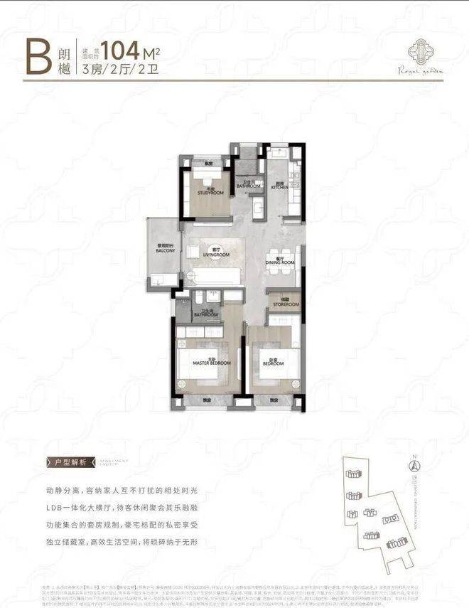 再看建面约104㎡B户型: