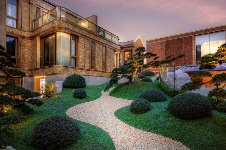 越秀外滩樾的公区庭院非常精致,其精心打造充满禅意的山水庭院。