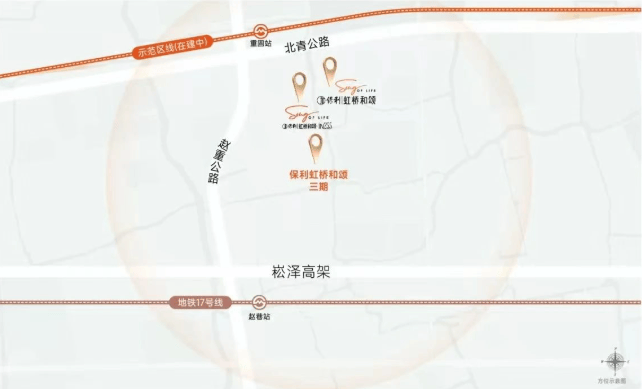交通方面:项目距离示范区线轨交站点(直线距离约600米),整个住宅片区,虹桥和颂·IN255处在靠近轨交站点的钻石位置。