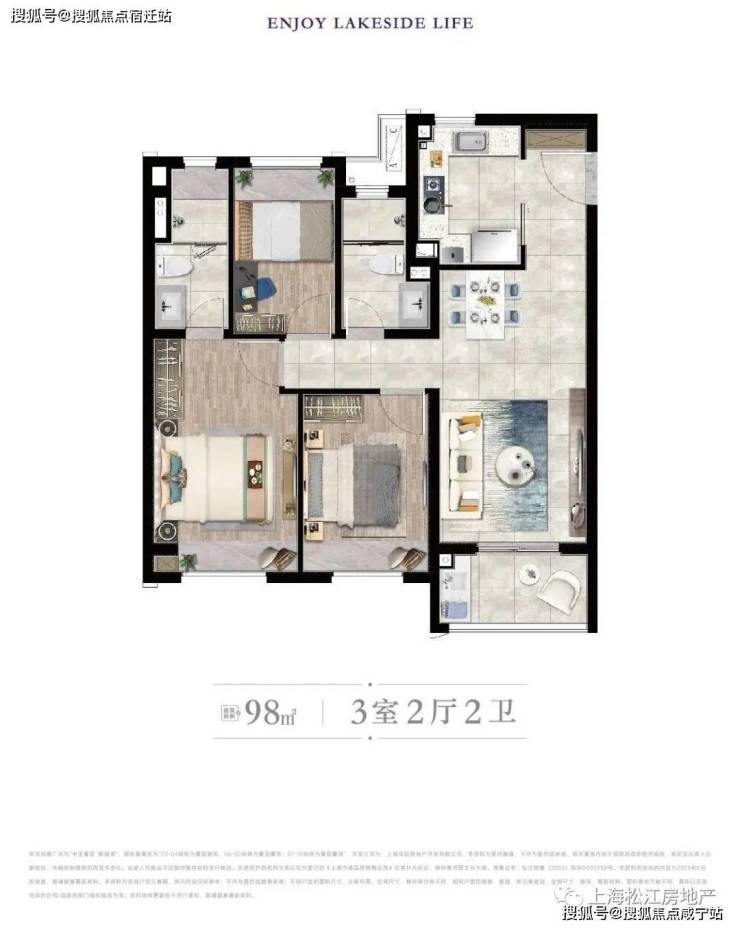建筑面积约98㎡三房,总价约518起