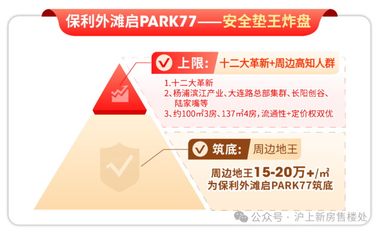 而保利外滩启PARK77成功破解了置业痛点,成为当之无愧“市中心安全垫王炸新盘”: