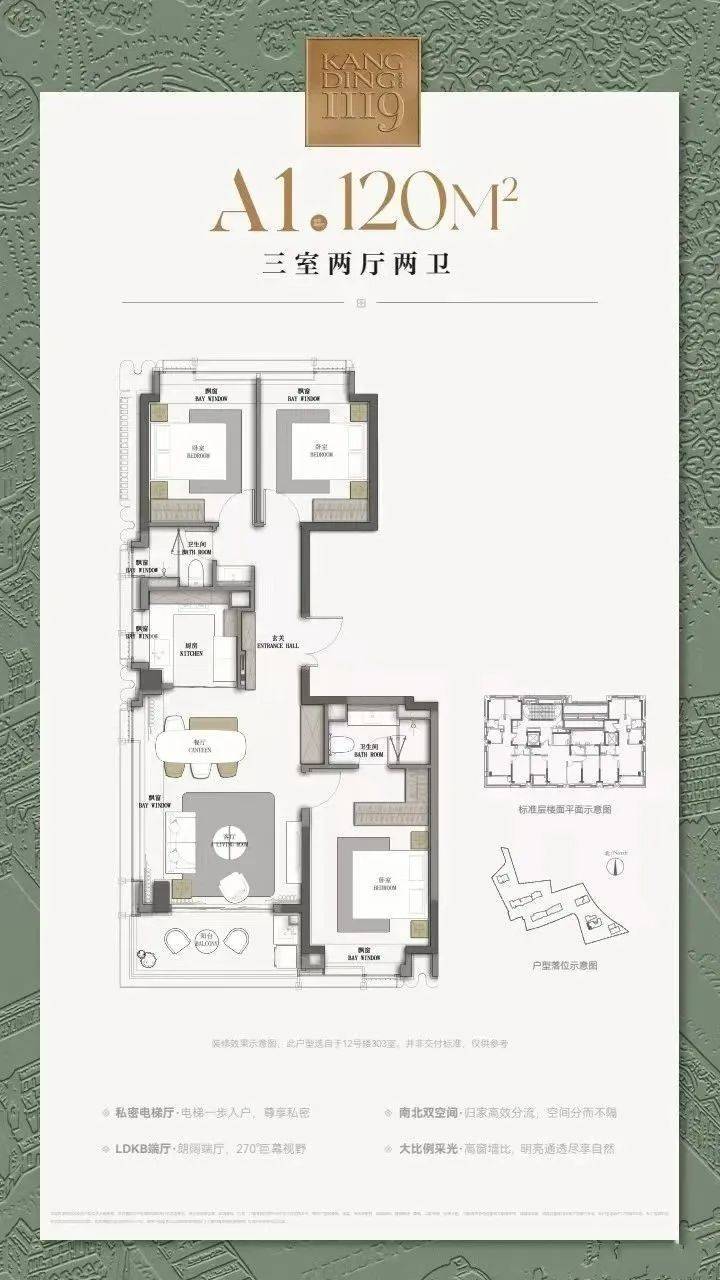 建面约120㎡3房2厅2卫▼