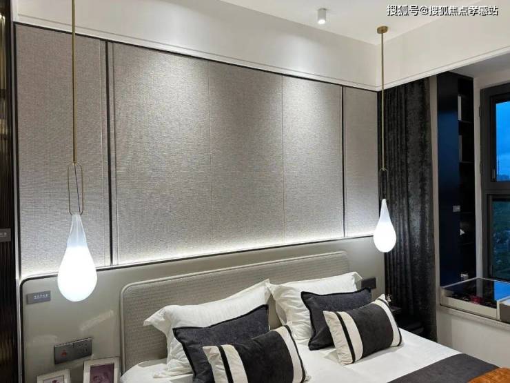 主卧床背景墙进行了软包处理,省去了业主未来二次装修的时间、精力跟成本,更好的给业主一个舒适且高颜值的家。 浦发上品官方售楼处热线:400-9966-940❄️❄️
