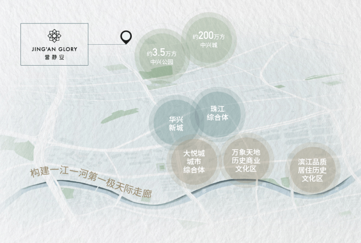 而项目到外滩和平饭店的直线距离正好是约3公里!妥妥的城心烫金地段!