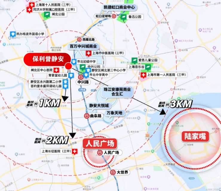 保利誉静安官方售楼处:400-1010-064☑️☑️同时项目距离人民广场商圈约2km、南京西路商圈约2km、陆家嘴商圈约3km、静安寺商圈约4km,自驾或地铁迅捷可达!