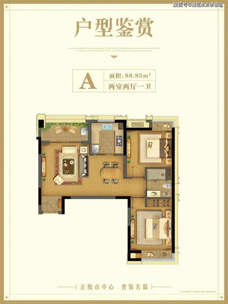 建面约88.85㎡2房户型▼