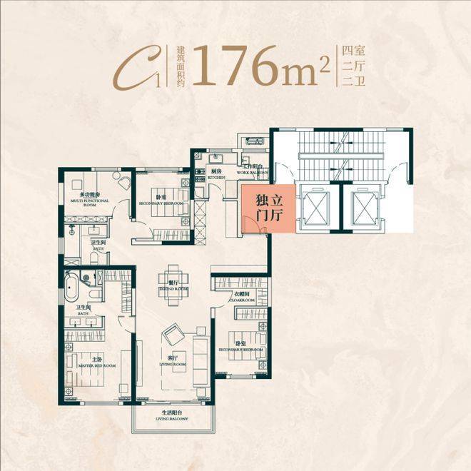 而且你仔细看,2个套房分列客厅左右,并且配置极为相似。这样两代人不仅保持了各自独立性和私密性,在舒适度上也接近。摒弃长久以来被默许的牺牲与奉献,这种“家庭平权”式传世大宅才是市场上新的爆款!