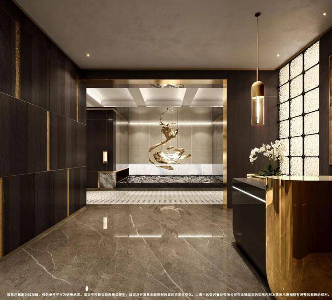 项目一楼设有星级入户大堂,挑高穹顶之下,天然石材与金属线条交织出当代艺术馆般的恢弘气度。这里不仅是归家的第一重仪仗,更是名流圈层的社交艺术厅,精致的皮革沙发休憩区,也能成为您会客洽谈的隐贵主场。