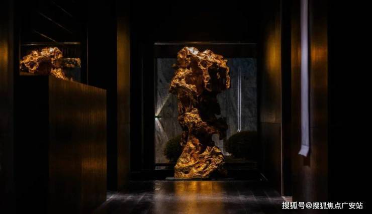 还有专门的艺廊,布置水景,空间灵动,再挂上雕塑家、艺术家的作品,整个空间逼格满满。