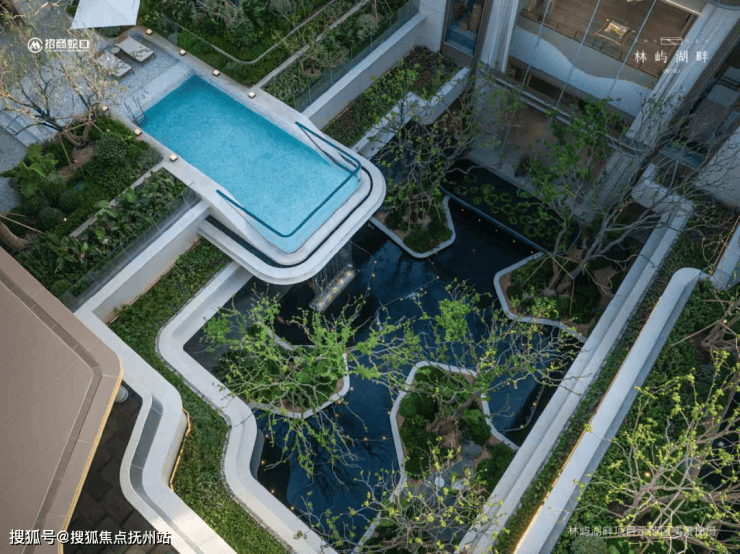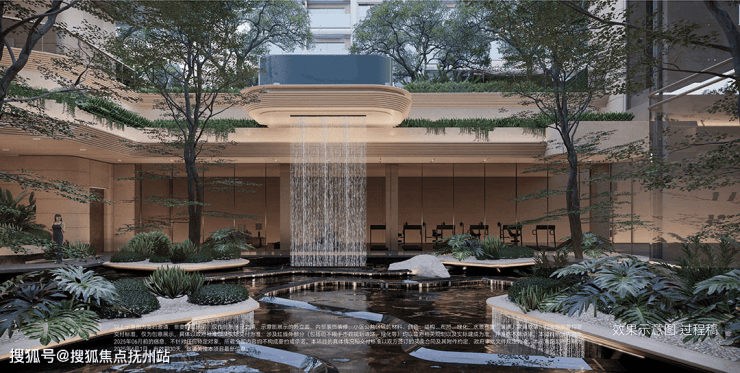 下沉峡谷:约420㎡丰富层次立体下沉庭院,区域首现悬浮水池,搭配4.3米飞瀑,塑造沉浸式度假感受。