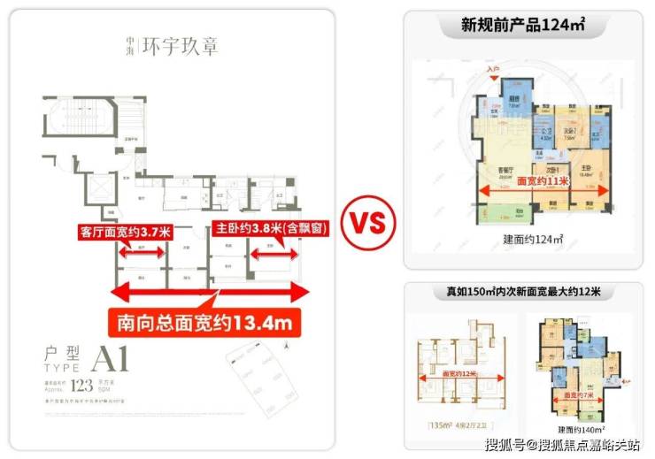 与新规前产品比,项目周边新规前128户型还是单阳台设计,实得率约81%,实得面积约104㎡,总价1600万以上,而环宇玖章凭借新规产品力,实得面积碾压,大部分户型总价控制在1500万以内。
