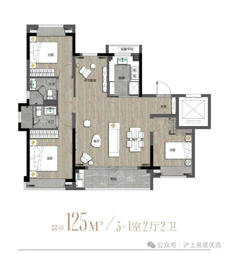 建面约125m²户型图