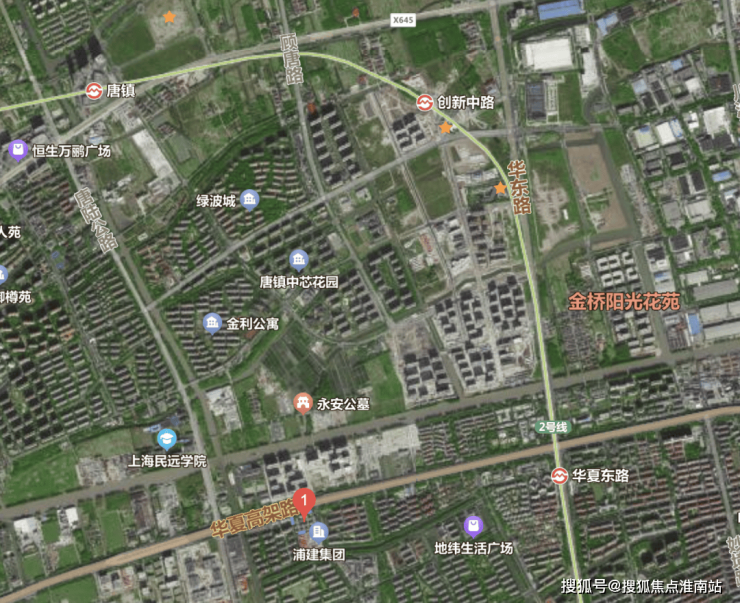 佳怡华庭项目位于川沙和唐镇交界处,和唐镇仅相隔一条华夏东路,距离2号线华夏东路站约1.3km。