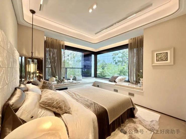 2、附赠空间拉满:赠送面积约17㎡!地毯率约82%!主卧套房270°飘窗+步入式衣帽间+独立卫浴设计拥有4个飘窗,尊崇感与实用性拉满!室内满飘窗结构,有效延伸空间,让各空间的居者都拥有独立的兴趣天地,男女主人在270°飘窗瞰景聊天、孩子在自己的私密空间拼乐高、老人在飘窗习字品茶,丰富生活场景皆在眼前~