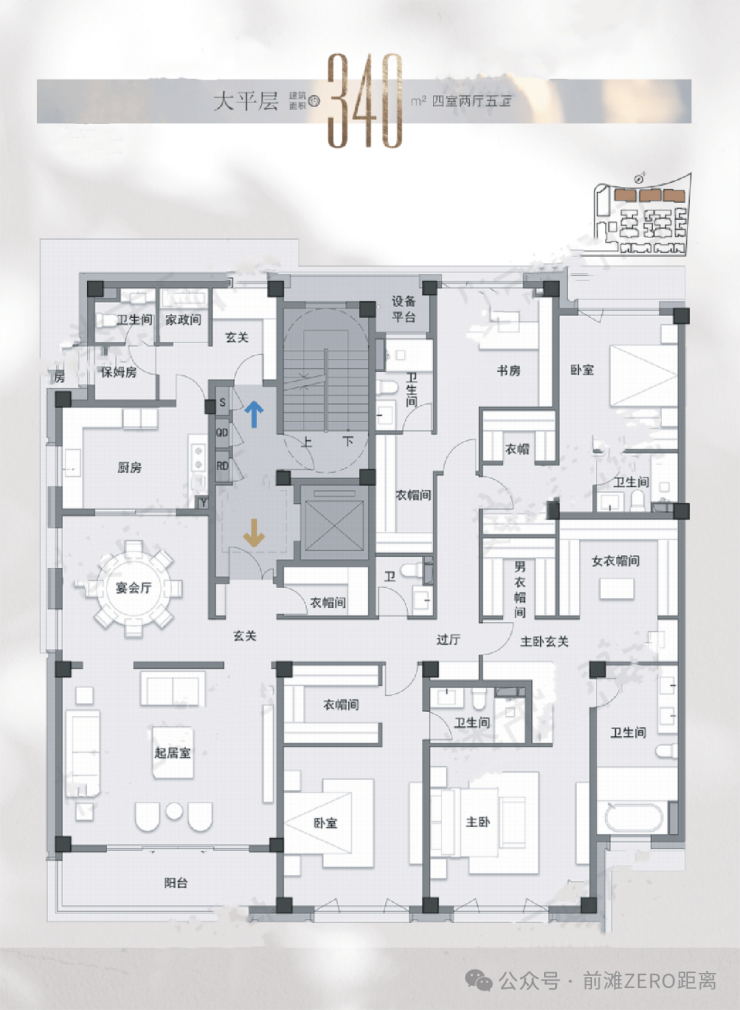 别墅是占主要大头的,且都是拼接型别墅:地上三层,地下一层,从430㎡-560㎡-690㎡三种,都是四房四厅五卫的设计。其主力总价段8000万左右