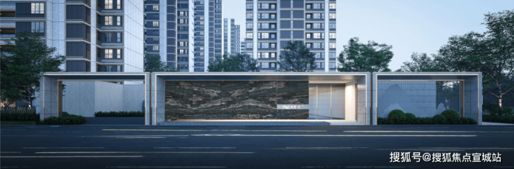 第一进:星级酒店的入户门头搭配入户水景,让入户更具仪式感、同时通过院内布景的遮挡,让小区内部景观增添一抹神秘感;